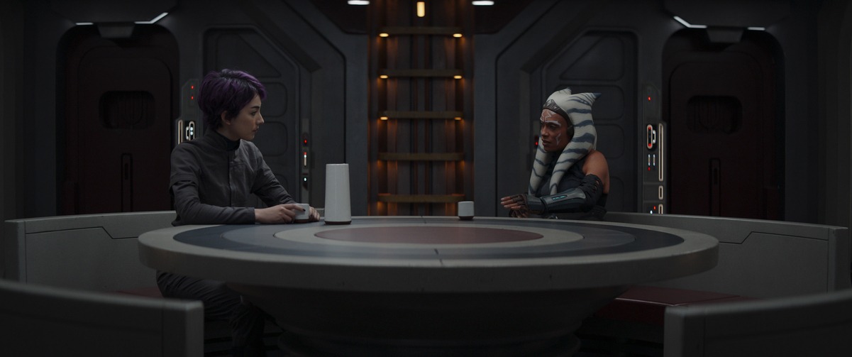 (L-R): Ahsoka Tano (Rosario Dawson) and Sabine Wren (Natasha Liu Bordizzo) in Lucasfilm’s STAR WARS: AHSOKA, exclusively on Disney+. ©2023 Lucasfilm Ltd. & TM. All Rights Reserved.