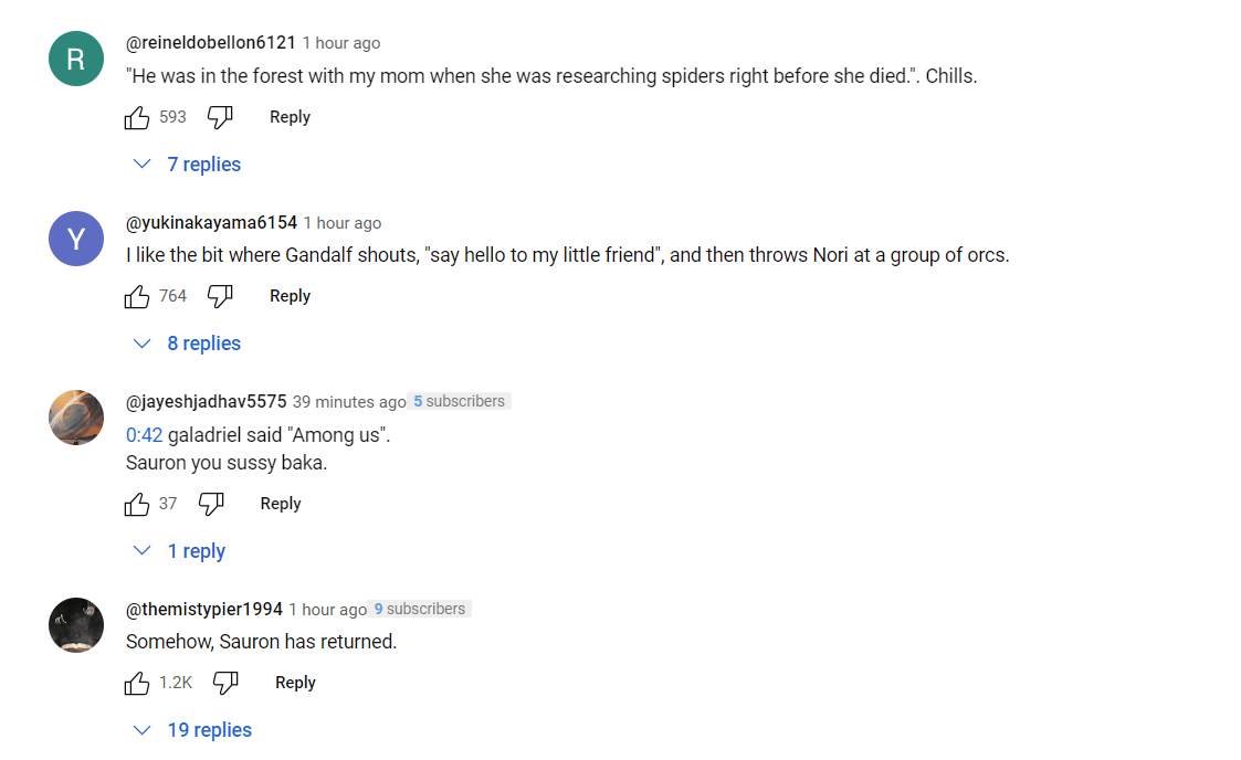 Screenshot of comments from The Lord of the Rings: The Rings of Power Season 2 teaser trailer