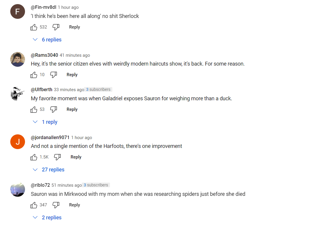 One person did find a positive in the trailer, “And not a single mention of the Harfoots, there’s one improvement.”