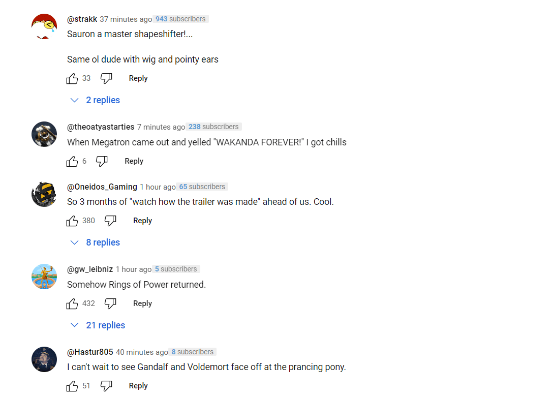 “What impress me the most about this trailer,.. they haven’t turned the comments section off,” wrote another.