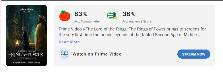 The Lord of the Rings: The Rings of Power Rotten Tomatoes scores