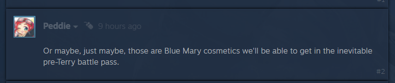 One user on the Street Fighter 6 Steam forums speculated, “Or maybe, just maybe, those are Blue Mary cosmetics we’ll be able to get in the inevitable pre-Terry battle pass.”