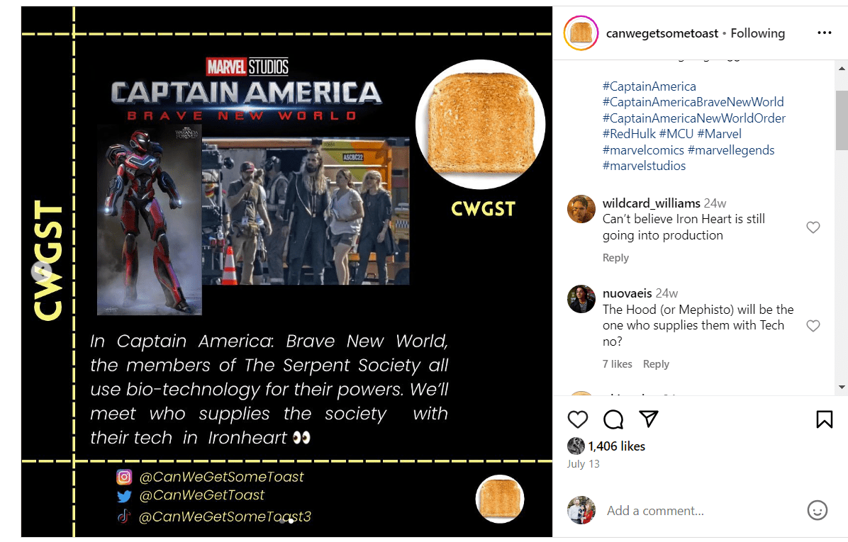 Captain America Brave New World plot details from Can We Get Some Toast on Instagram