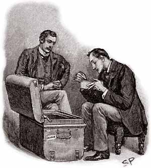 An illustration of Sherlock Holmes and Dr. John Watson in The Strand Magazine in 1893
