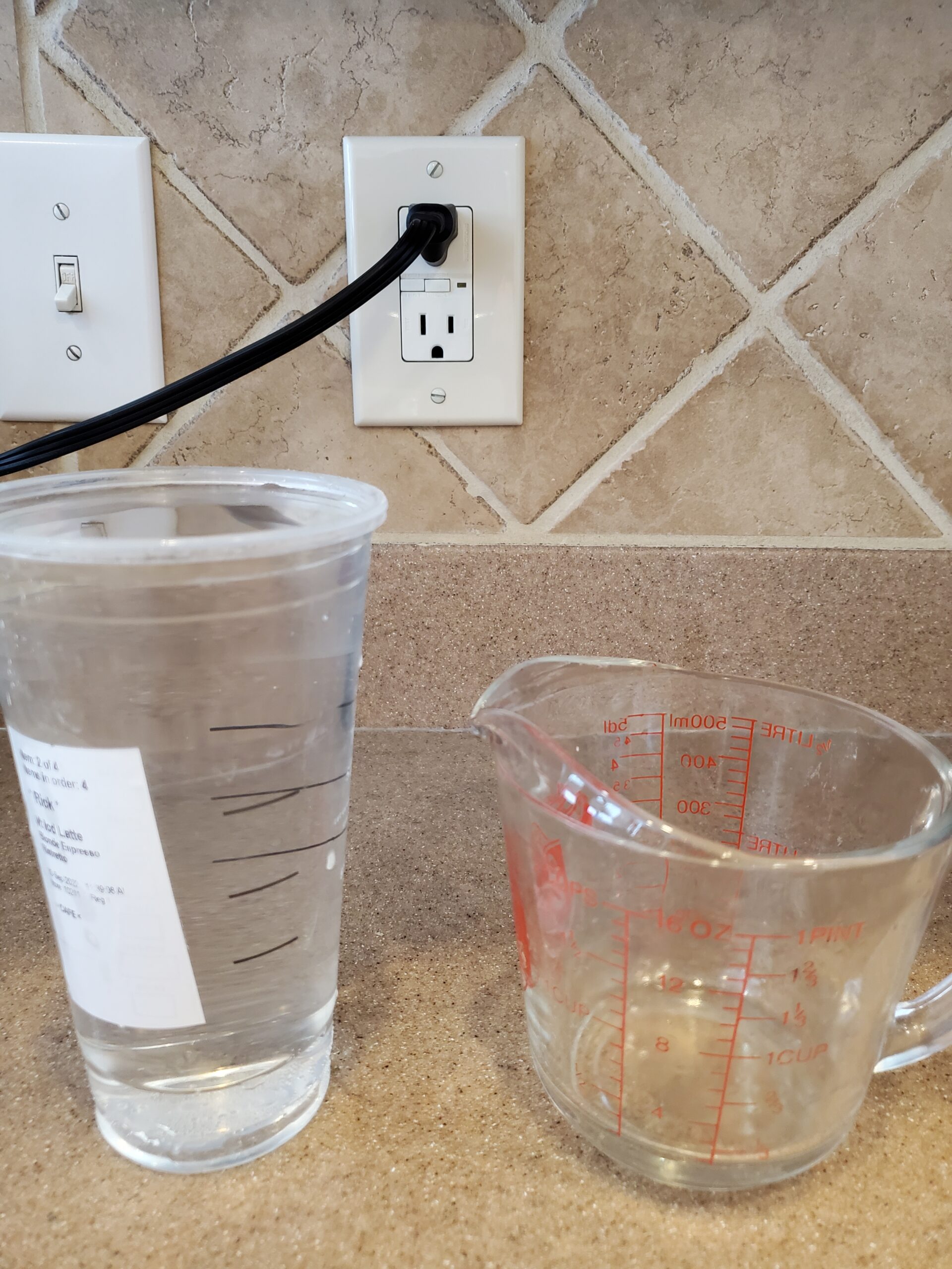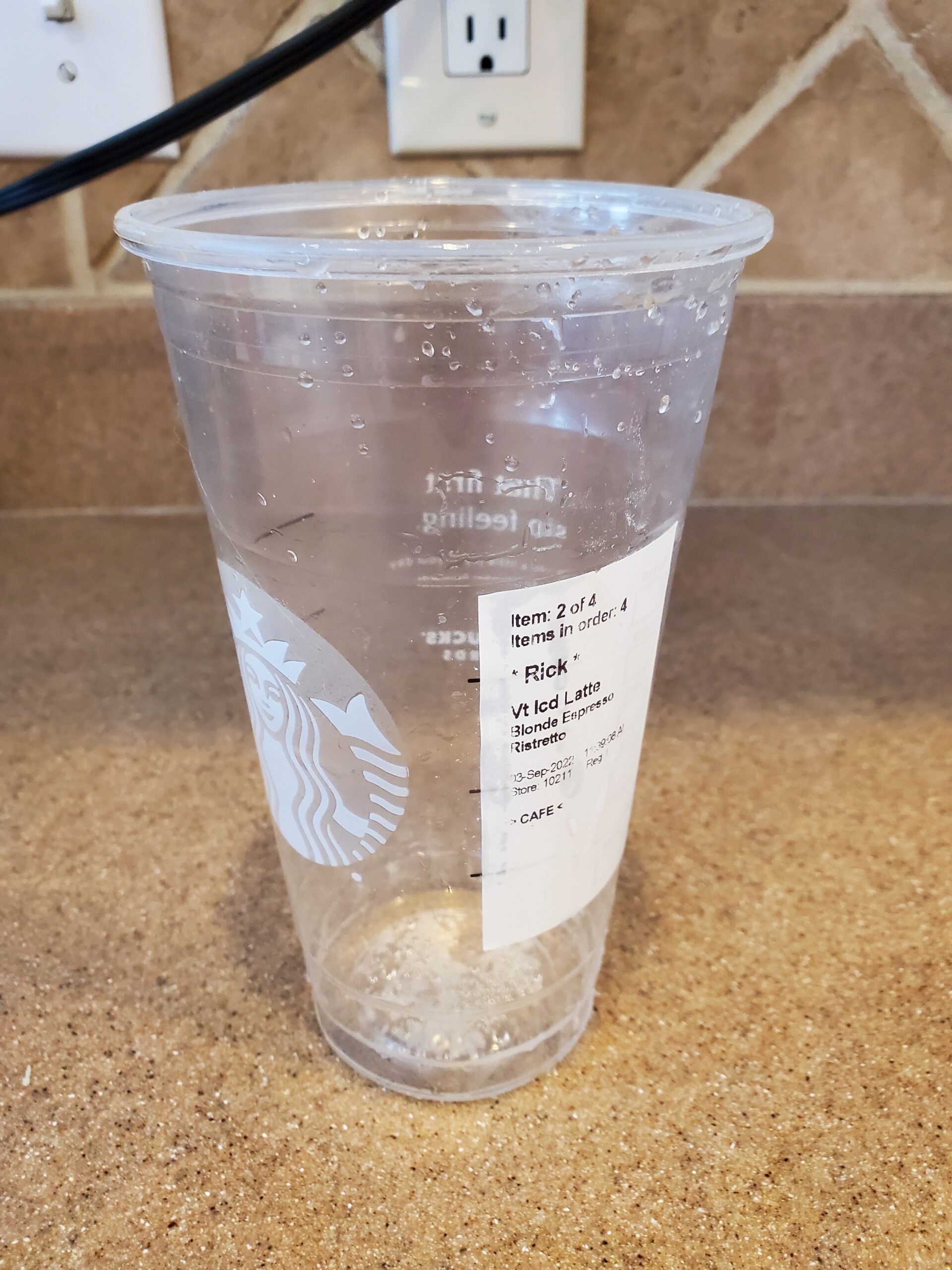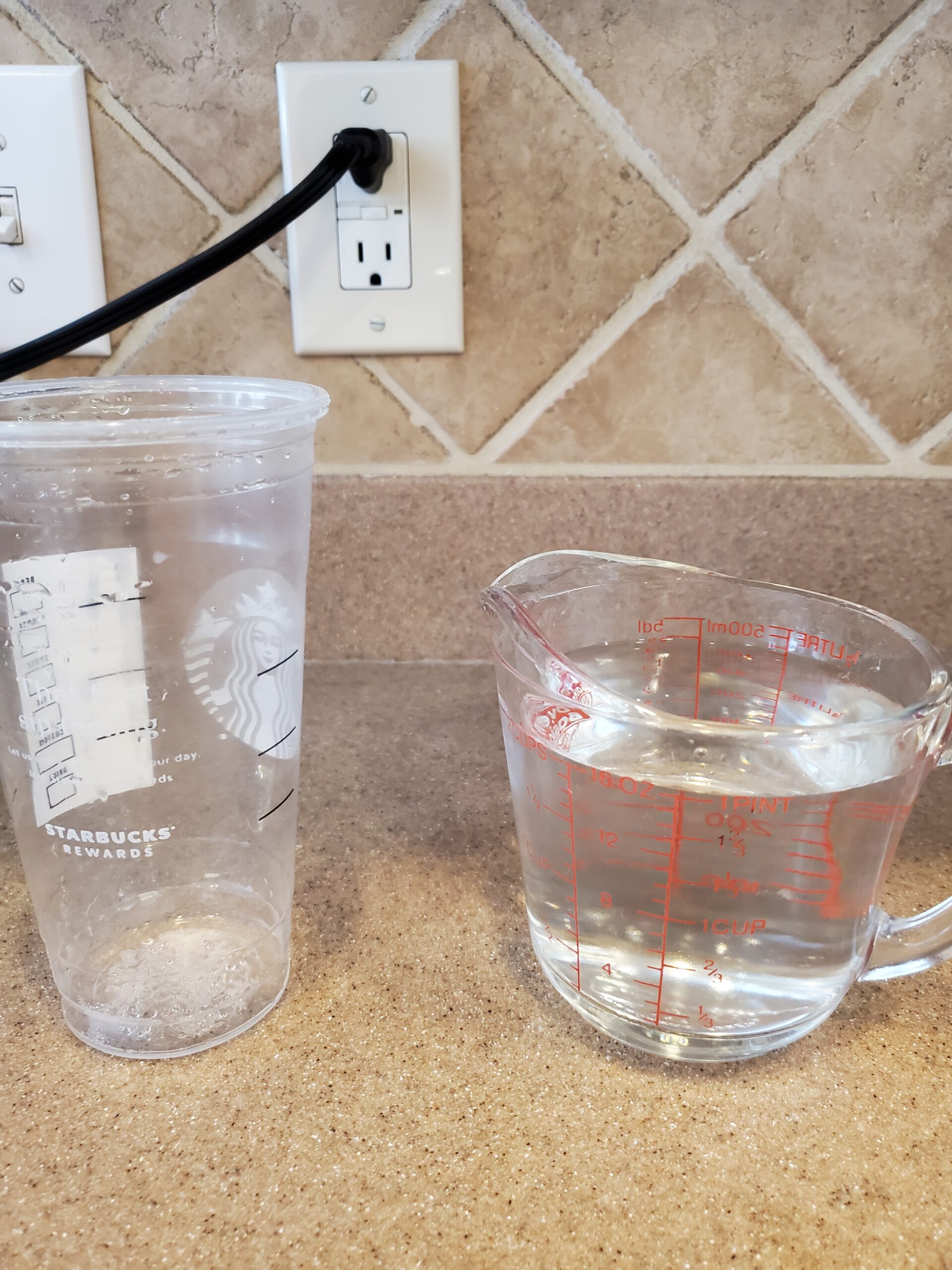 Then we added the 16 ounces to the empty cup. This is the same amount as a “tall”.