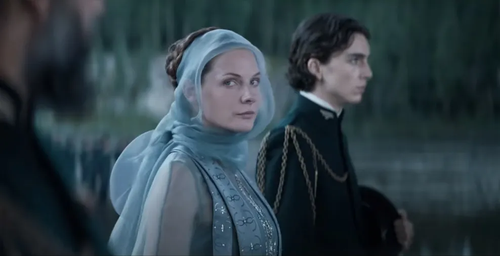 Rebecca Ferguson as Lady Jessica and Timothée Chalamet as Paul Atreides in Dune (2021), Warner Bros. Pictures