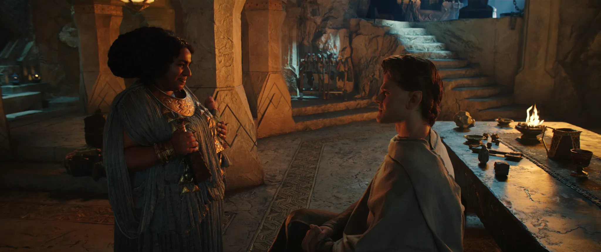Cynthia Addai-Robinson as Queen Regent Míriel, Ismael Cruz Córdova as Arondir, and Charlie Vickers as Halbrand in The Lord of the Rings: The Rings of Power (2022), Amazon Studios