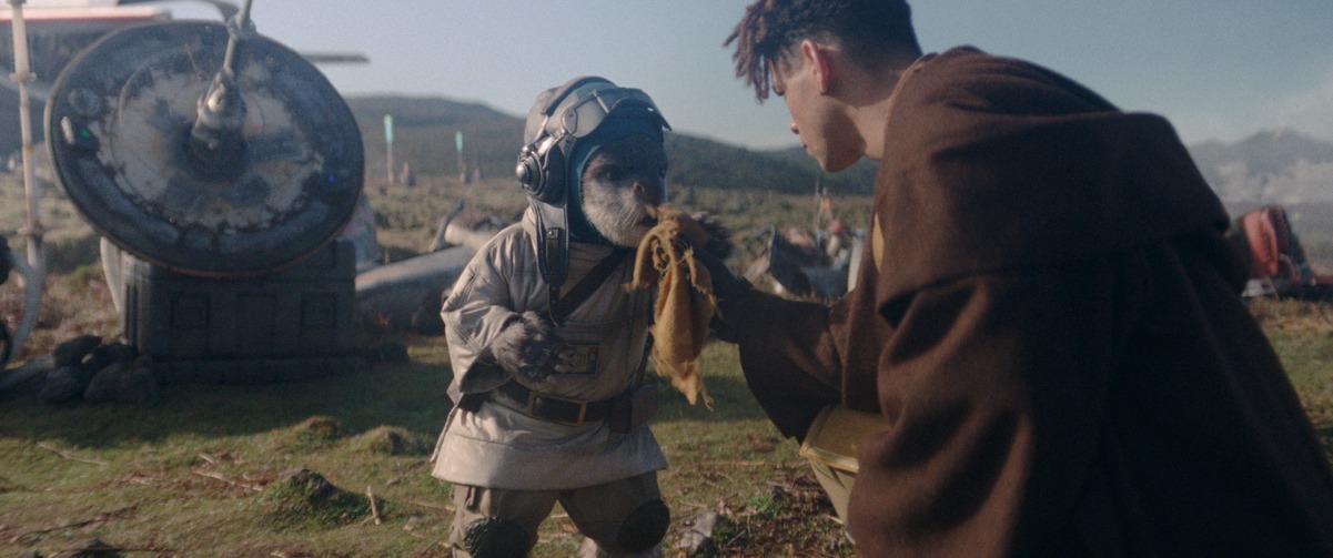 (L-R): Bazil (Hassan Taj) and Yord Fandar (Charlie Barnett) in Lucasfilm’s THE ACOLYTE, season one, exclusively on Disney+. ©2024 Lucasfilm Ltd. & TM. All Rights Reserved.