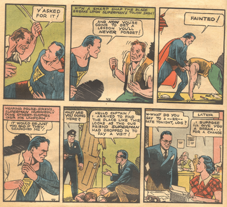 This tradition would continue into the 1940s as seen in Action Comics #82 albeit Kent is given a a yellow fedora as well.