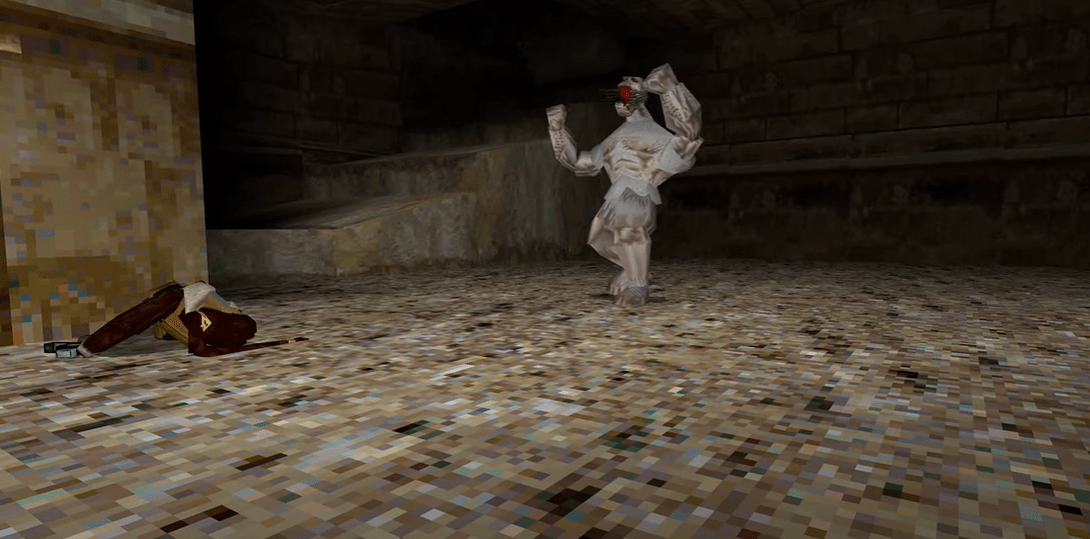 A Yeti celebrates after killing Lara Croft in Tomb Raider II (1997), Core Design