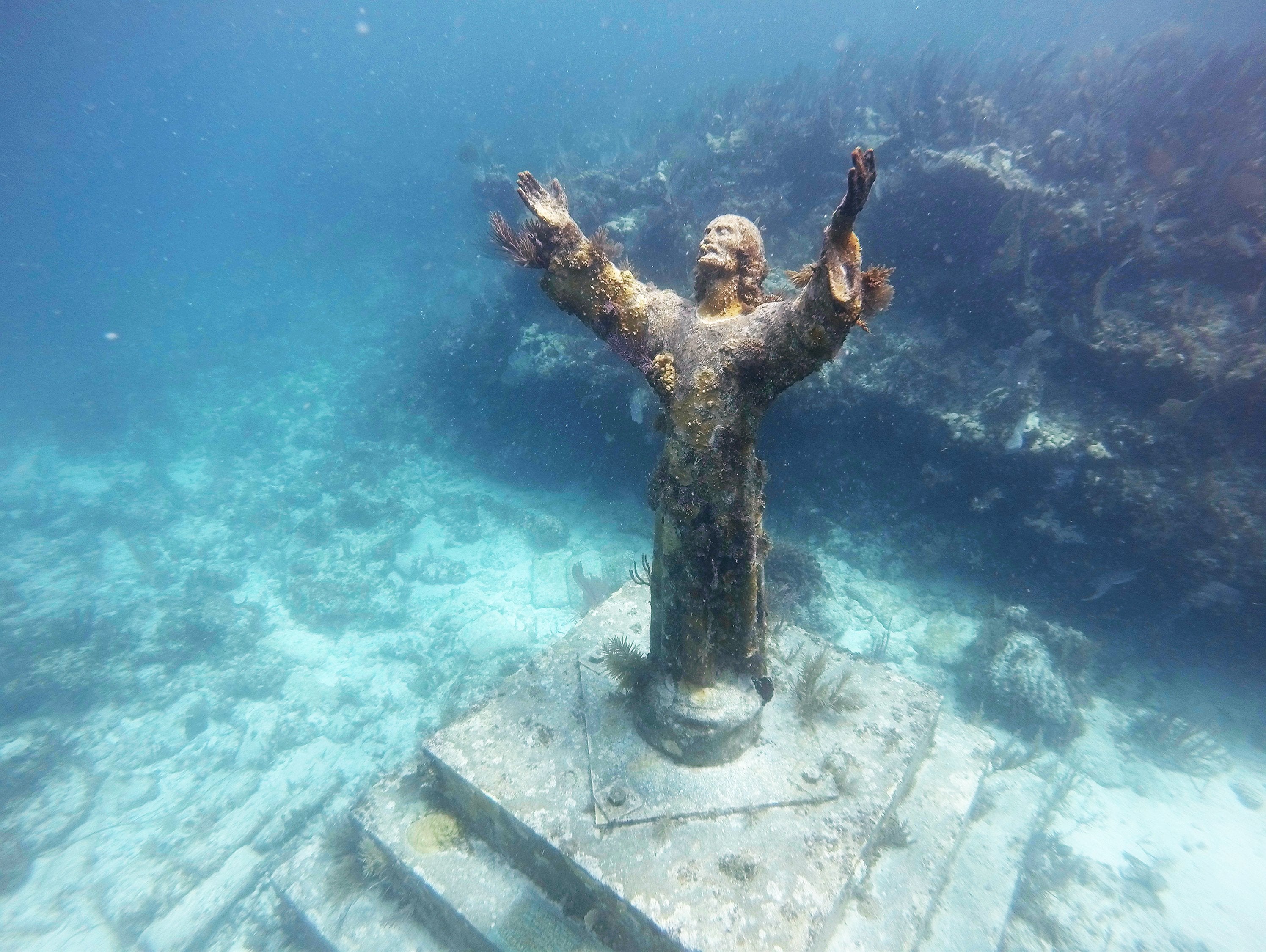 While in the water, it took me a while to get acclimated to using my mask and snorkel. My older brother, not so much. He was like a fish in his element. He was taking deep dives to take pictures of the the big statue of Jesus at the bottom of the ocean. We spent a good hour and a half looking at he coral reef and the aquatic life around the reef. My biggest pleasure from the experience was watching my big brother show his skills as a diver and his enthusiasm for it.