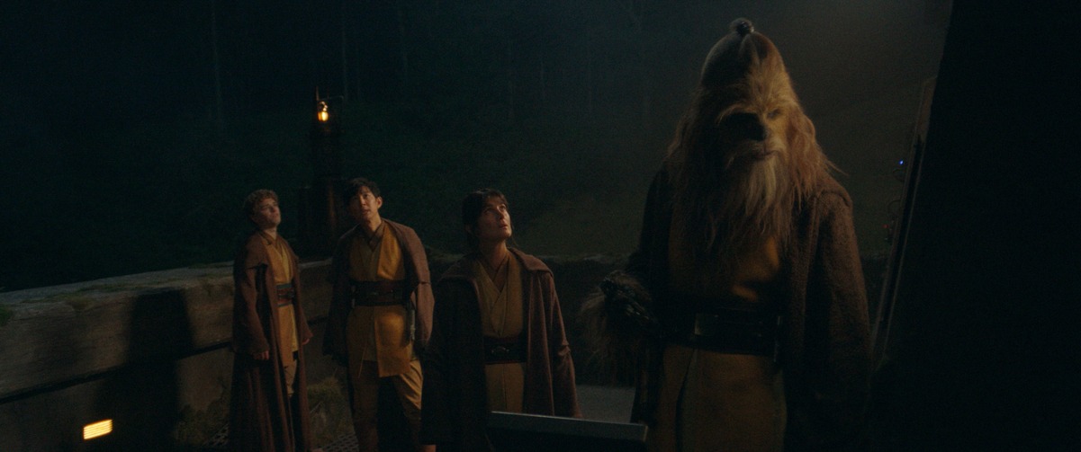 (L-R): Torbin (Dean-Charles Chapman), Sol (Lee Jung-jae), Jedi Master Indara (Carrie-Anne Moss) and Kelnacca (Joonas Suotamo) in Lucasfilm’s THE ACOLYTE, season one, exclusively on Disney+. ©2024 Lucasfilm Ltd. & TM. All Rights Reserved.