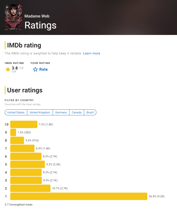 On IMDb, the film has an atrocious 3.8 out of 10 from over 25,000 reviews. Over 36% of reviewers gave the film a 1 out of 10.
