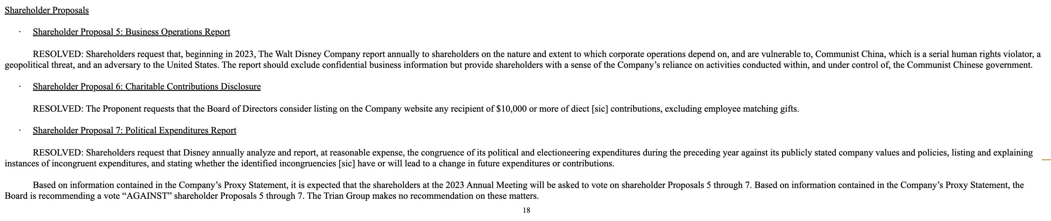 What’s more, SEC filings reveal the full extent of proposals that Peltz and Trian are bringing forward for Disney shareholders to vote on.