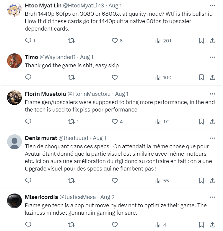 FlorinMusetoiu added, “Frame gen/upscalers were supposed to bring more performance, in the end the tech is used to fix piss poor performance.”