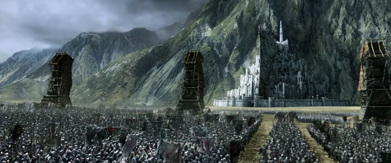 Sauron’s army attacks Minas Tirith in The Lord of the Rings: The Return of the King Extended Edition (2003), Warner Bros. Pictures