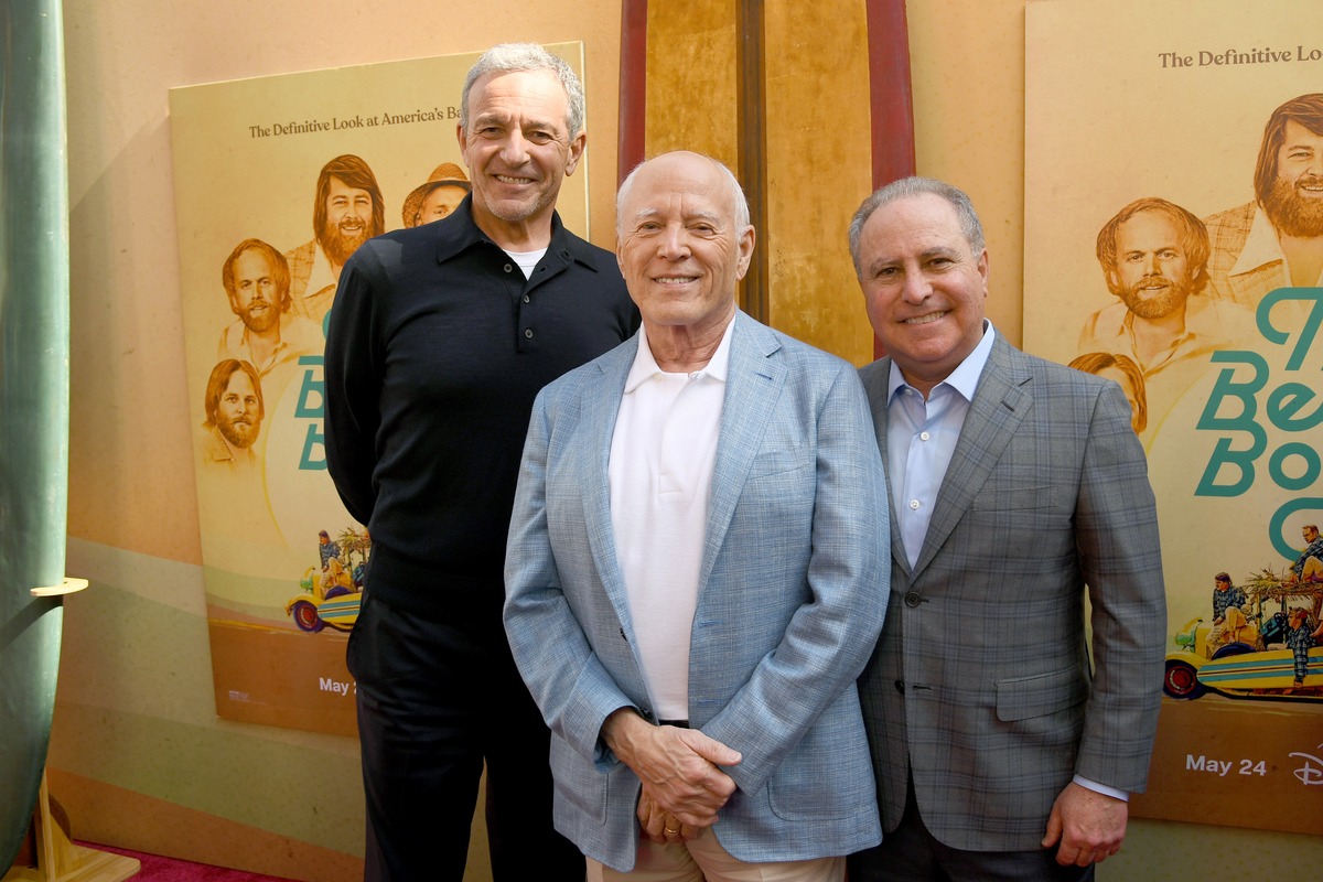 LOS ANGELES, CALIFORNIA – MAY 21: (L-R) Bob Iger, CEO, The Walt Disney Company, Frank Marshall and Alan Bergman, Co-Chairman, Disney Entertainment attend the world premiere of Disney+ documentary “The Beach Boys” at the TLC Chinese Theatre in Hollywood, California on May 21, 2024. (Photo by Alberto E. Rodriguez/Getty Images for Disney)