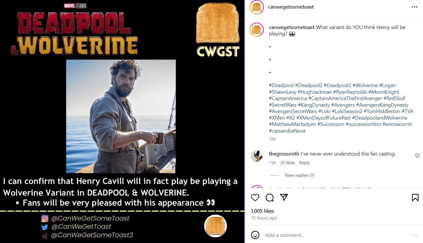 This rumor comes from CanWeGetSomeToast, who shared on Instagram, “I can confirm that Henry Cavill will in fact play be playing a Wolverine Variant in Deadpool & Wolverine.”
