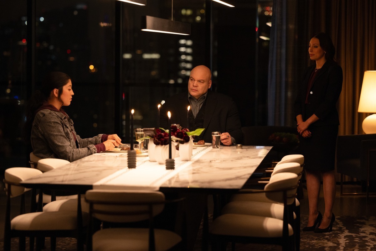 (L-R): Alaqua Cox as Maya Lopez and Vincent D’Onofrio as Wilson Fisk/Kingpin in Marvel Studios’ Echo, releasing on Hulu and Disney+. Photo by Chuck Zlotnick. ©Marvel Studios 2023. All Rights Reserved.