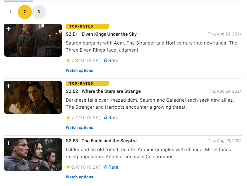 The Lord of the Rings: The Rings of Power Season 2 IMDb scores by individual episode