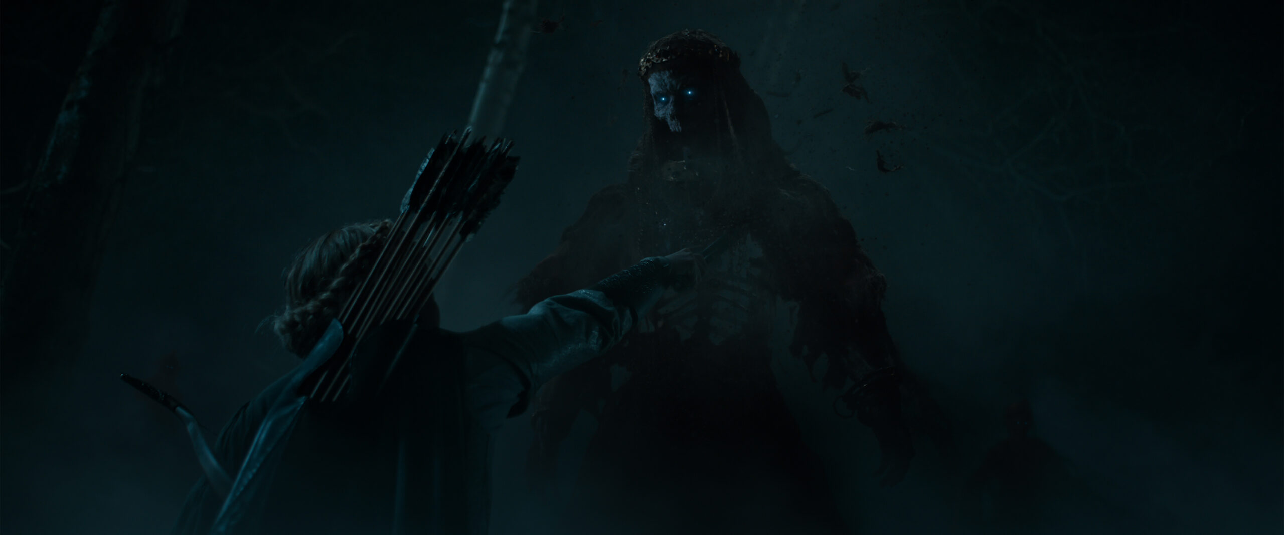 Morfydd Clark as Galadriel and a Barrow-Wight in The Lord of the Rings: The Rings of Power (2024), Amazon MGM Studios