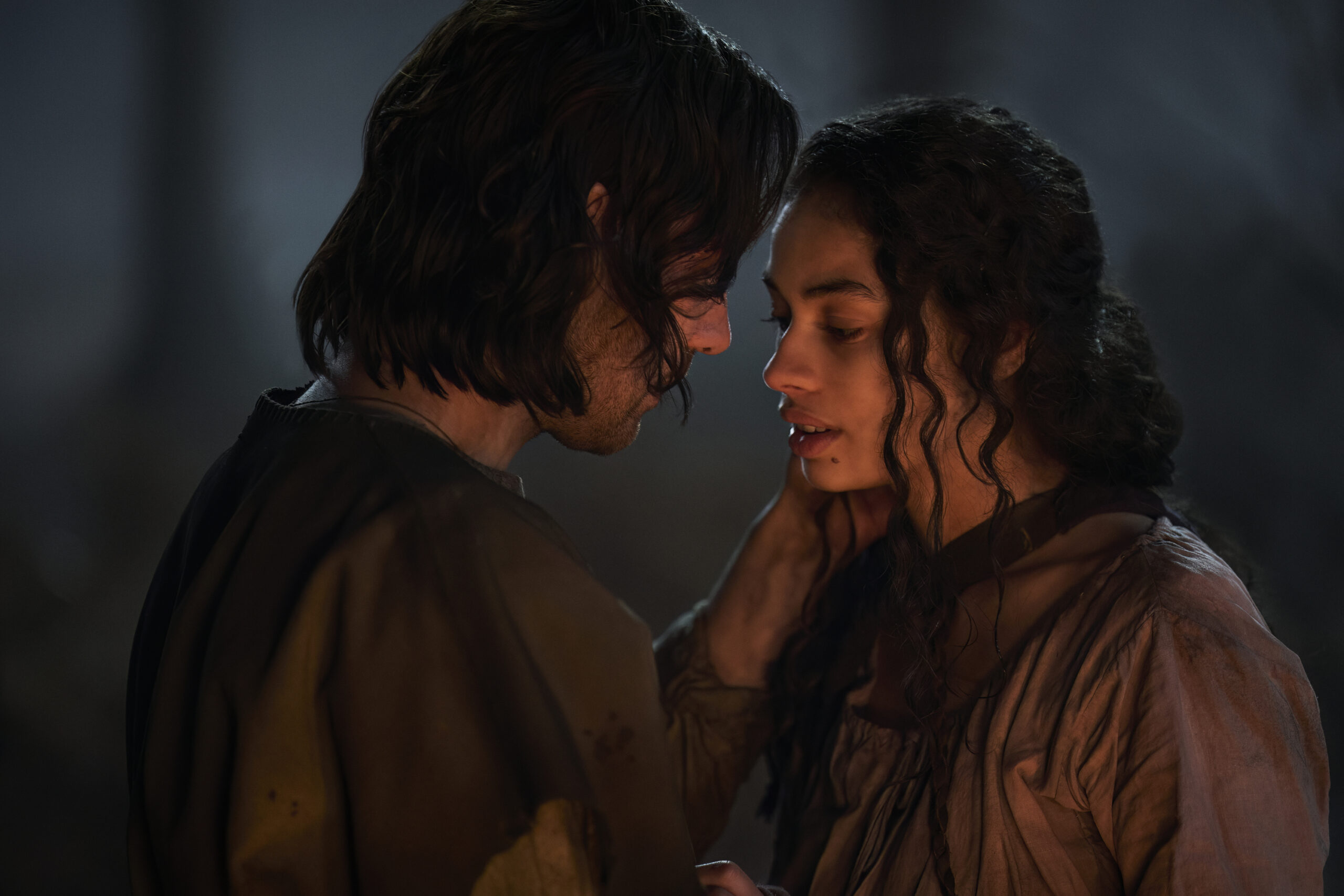 Maxim Baldry as Isildur and Nia Towle as Estrid in The Lord of the Rings: The Rings of Power (2024), Amazon MGM Studios