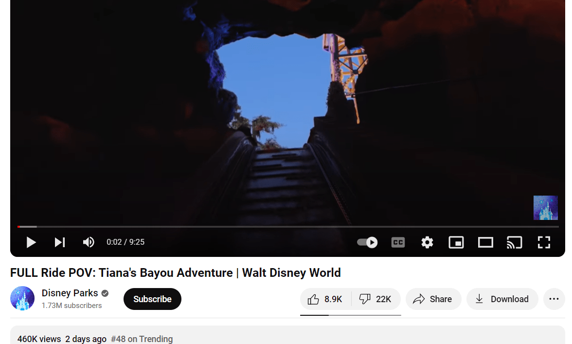 The official Tiana’s Bayou Adventure video from Disney Parks is badly ratioed with dislikes.
