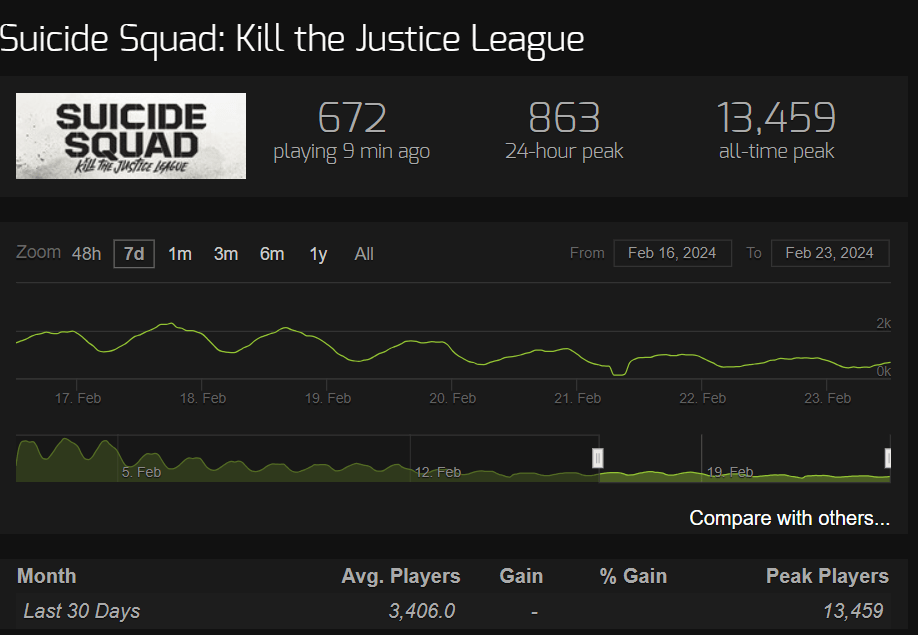 Steam Charts data for Suicide Squad: Kill the Justice League